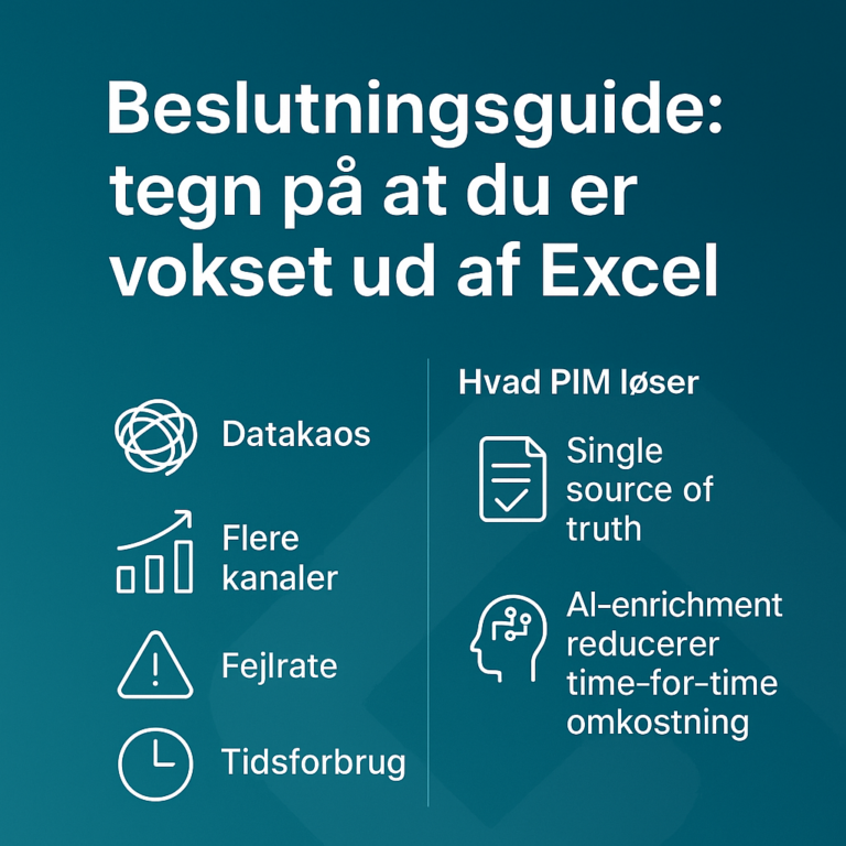 Guides, Overblik & Viden PIM vs. regneark: hvornår det bliver dyrere at “spare” end at optimere Megagear.dkfebruar 27, 20260 Hvis dine produktdata lever i et regneark, er du ikke alene. Excel er genialt til hurtige lister og ad hoc-arbejde,…